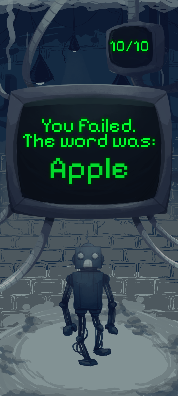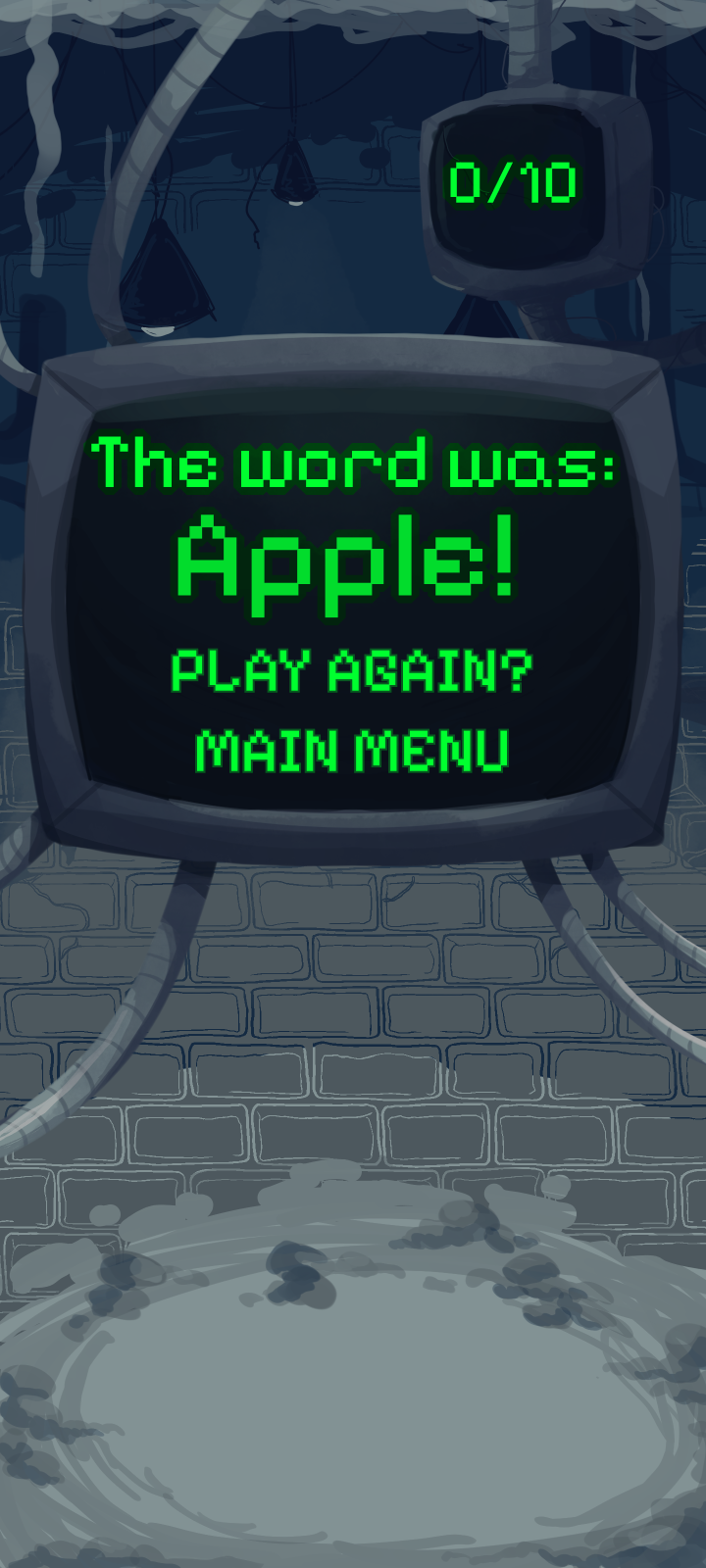 When your wrong attempts reach 10 you will get a game over. Upon getting a game over the word will be